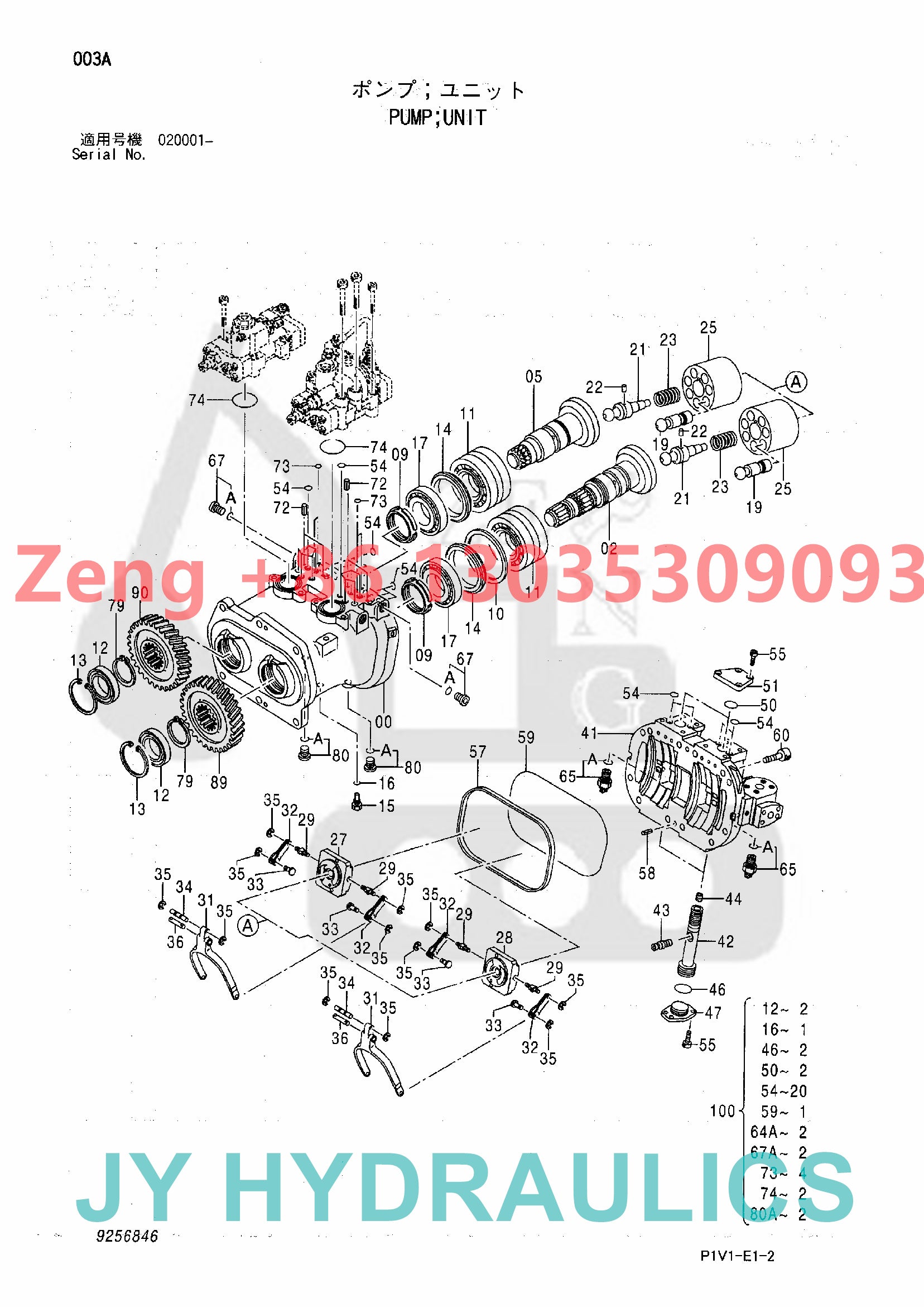 HITACHI 9256125 9257348 HYDRAULIC PUMP PARTS