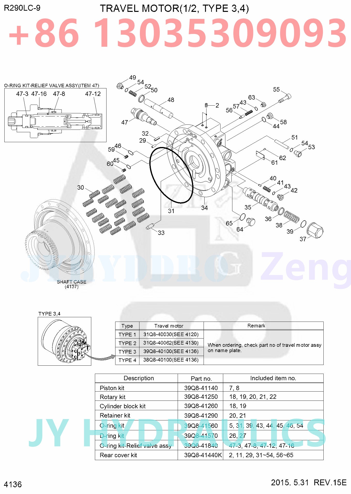 | Parts on group TRAVEL MOTOR (2/2, TYPE 3,4): | ||||