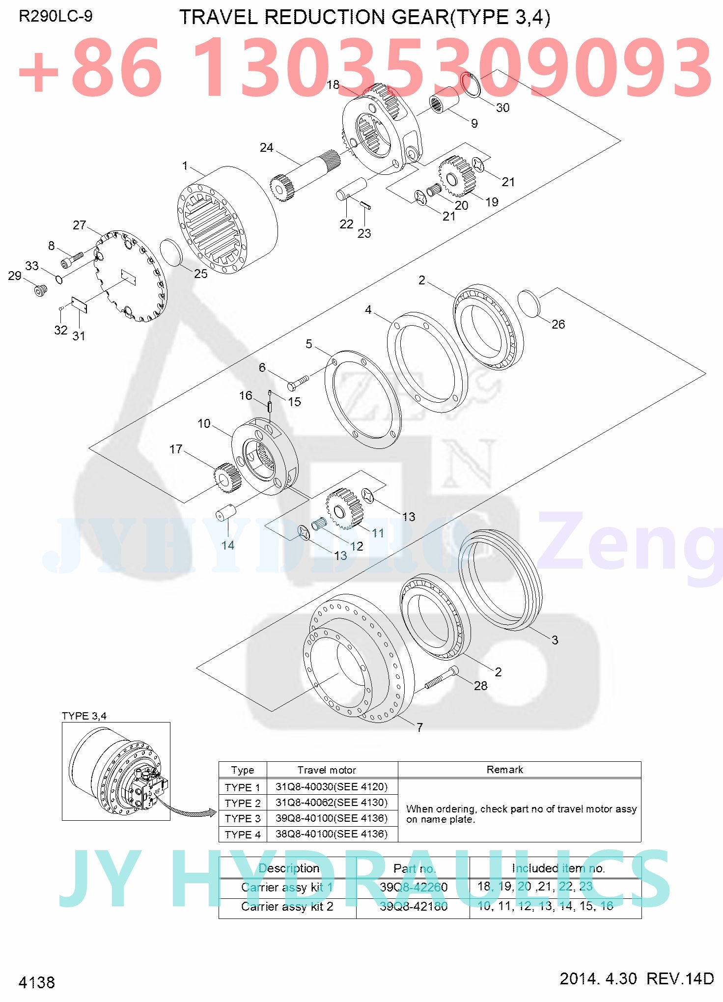 | Parts on group TRAVEL REDUCTION GEAR(TYPE 3,4): | ||||